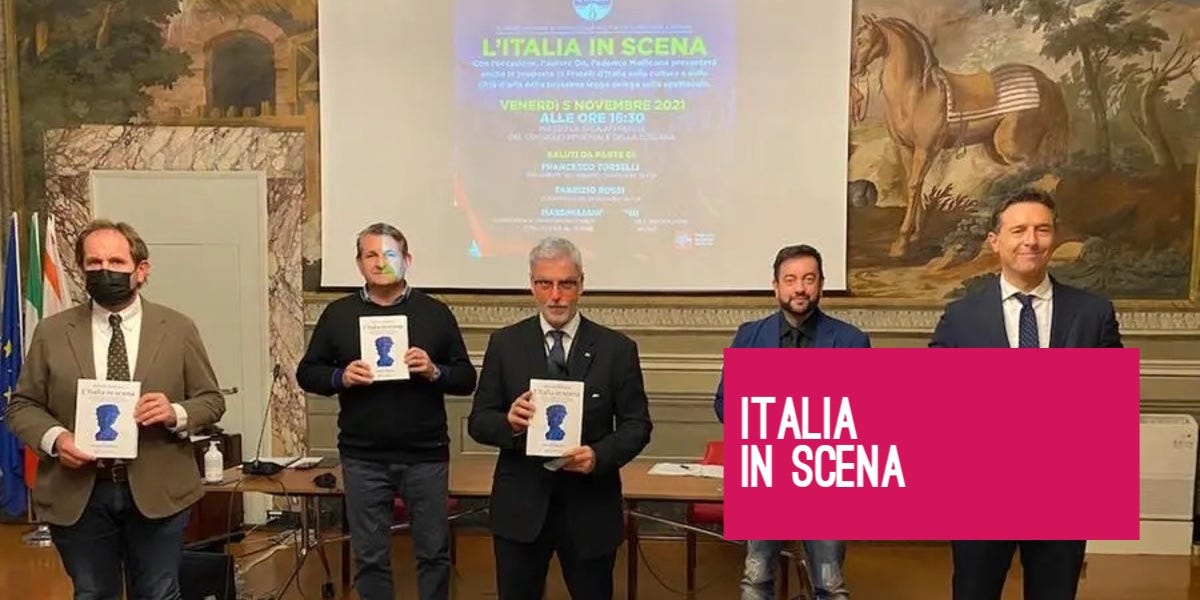 Martedì 21 ottobre la Camera ha approvato in prima lettura la proposta Mollicone (FdI, da giugno Presidente della Commissione Cultura) sulla valorizzazione dei beni culturali. In particolare, si prevede che il Ministero della Cultura prepari una strategia nazionale di valorizzazione dei beni culturali denominata “Italia in scena”. È sicuramente un caso che il titolo sia lo stesso del libro “Italia in scena” pubblicato nel 2021 proprio da Mollicone con un’introduzione di Giorgia Meloni.